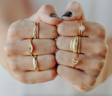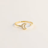 A CZ ringed hollowed moon represents the wonders of strength of allowing the divine feminine to protect and embolden the spirit. The open setting is perfect for creating your own unique layered look, and a delicate squeeze will bring you the perfect fit. We crafted our collection of rings to make every day a reminder of joy, self-love, and to shine from within.