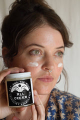 This cream is truly an 'all' cream. Super juicy, protecting, and hydrating for face and body, and a little goes a loooong way. What makes this cream so great? I would say the perfect blend of hydrating and toning elements like aloe vera and rosewater, with moisturizers and skin protectors like organic sunflower oil and shea butter.