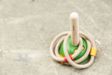 Practice your aim with this Meadow Ring Toss! Features 6 rope rings with colored beads and 3 wooden posts of various heights. Place the posts close for beginner and spread them out for advanced play!