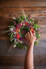 Create your own festive wreath using beautiful, sustainably grown flowers and foliage from Sweet Mountaintop Farm!
