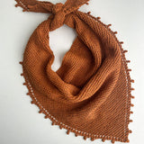 Make this simple and sweet bandana to toss on or off as weather or fashion dictates. The delicate and lovely picot lace edging makes this bandana special without being super fussy. You’re going to love the linen drape and soft feel, which just gets softer and more supple with use and washing. This pattern is made on straight or round size 3 needles with a 7 row repeated pattern throughout the piece.  Bandana is a triangle measuring 18" high by 36" wide at the widest place. Gauge is 20 sts and 42 rows across 4" of garter stitch Kit Includes: :: 2 skeins of Flax & Twine Daytime Linen Fingering Weight (175 yds, 75 g) :: Bennet Bandana Pattern with link in pattern to Picot Lace Edge Technique Video
