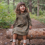 She'll be ready for fall celebrations in our frill collar dress, made with the softest 100% combed cotton jersey. In our fall updated mushrooms print and henley front, it's perfect for anything fall brings.