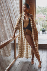 This Kara Thoms Boutique dress is our new favorite piece to throw on for a day out at the farmers market onto the beach and then back at home. Made from 100% Organic cotton voile and handmade in small batches in Indonesia. You'll feel so light and airy while wearing this stunning silhouette. Each piece is hand dyed, the pattern may vary. Wash by hand and air dry.