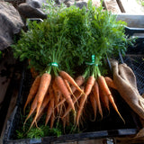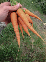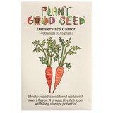 Danvers 126 (Daucus carota) is a dependable no-frills heirloom carrot perfect for production on small farms. It's sweet and crisp for fresh eating and creamy and succulent when roasted or in soups. An archetypal carrot in shape: blocky shoulders; 8-10" steeply-tapered roots; bright orange color; strong, tall tops for easy harvesting. Danvers 126 is very adaptable to different soil conditions, producing well even in tighter clay soils. We grow this carrot year-round in Ojai, and are very excited to be offering this wonderful variety to you!