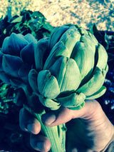 Green Globe Artichoke (Cynara cardunculus var. scolymus) is a reliable heirloom strain that produces round globes that are delicious when young and full of heart when mature. In warmer climates can be started in the fall for spring production. Otherwise, start in spring and enjoy second year production.