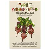 Hands down the best open-pollinated beet available today, Shiraz Tall Top (Beta vulgaris) is an exemplar of organic crop breeding work from the modern legends of the craft. An early 2000s collaboration from between the Organic Seed Alliance, John Navazio, Steve Peters and many others, Shiraz displays contains many of the strongest traits of hybrid table beets yet in an open-pollinated form. Selected over many seasons for lush, tall tops that can be leaf harvested and red round roots resistant to Rhizoctonia dry rot (a common fungal disease).