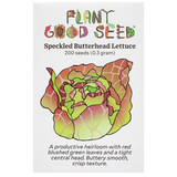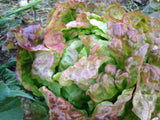 Speckled Butterhead (Lactuca sativa) is a heirloom from the early 1800s. This is a gorgeous lettuce: green leaves with reddish speckles and a nice tight central head. Butterheads are our favorite eating lettuce, and Speckled Butterhead is our favorite variety of this kind. The texture of the leaves is a combination of delicate softness and crisp/moist that is unique to butterheads. Speckled is a sweet variety, rarely bitter.