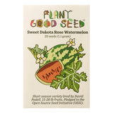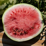 A short day watermelon (Citrullus lanatus) originating from organic farmer David Podoll in North Dakota. Early maturing, good for cold climates, but performs great in ours here. We've improved the original line over two generations to remove any lumpy, misshapen fruits we countered in the first production.