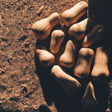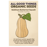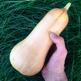 Butternut (Cucurbita moschata) is easily one of the most recognizable winter squash varieties today, and it all began with this heirloom. In the late 1940s a farmer named Charles A. Leggett experimented with winter squash breeding in his modest fields. His results are this highly recognizable bell-shaped strain that has typically produces four-to-five-pound fruits and has incredible creamy flesh and edible light-tan colored skin. Leggett presented the variety to agricultural specialists in Waltham Field Station, and the rest is history. The strain remains productive - three to five fruits per plant can be expected under ideal conditions - and due to its size, matures quicker than many other winter squash strains. Here in Southern California we plant in July for early autumn harvest. In cooler climates, plant as early as June 1st.