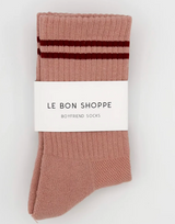 These beauties feature a triple contrast stripe at the opening and a shorter classic crew sock length. She is a universally quintessential sock and especially flattering for our petite ladies.