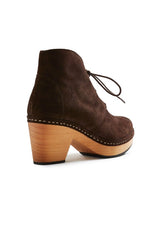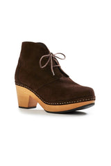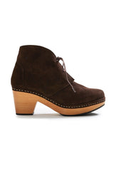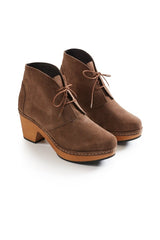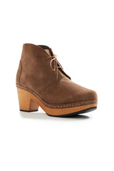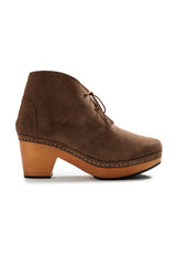 Introducing Lisa B's new smooth toe bootie clog in a classic, supple mushroom and classic dark brown suede leather. Modern, with a touch of edge and plenty of comfort. 2 1/2" mid heel height authentically crafted from pine wood. Suede upper, leather lined. Made in Spain. Fit is true to size. Half sizes should order up.