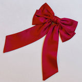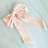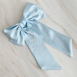 Expertly crafted with high-quality satin, this clip features a unique and elegant double bow design. Perfect for special occasions, it effortlessly adds a touch of sophistication and charm to any hairstyle. Medium capacity to hold hair Dimensions: approximately 10” x 7” x 1" Made in China