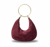 The Dumpling Bag features a softly structured silhouette with two signature side rings that give you options for how you carry it. Clasp the rings together for a compact crescent shape, or link to the larger ring for wrist carry.