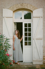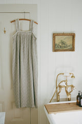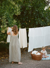 Sewn in 50% organic cotton, 50% organic linen Liberty Fabrics in a quintessential floral heritage design. This easy-breezy dress is machine washable and durable enough for daily wear. Features a square neckline and fixed straps trimmed with petite scallop-edging. The gently pleated bodice gives way to an ankle-grazing, A-line skirt. We won’t blame you for wearing this dress everyday.