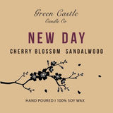 Hand-poured, 100% soy wax candles by local artisan Meadow and her mom Rachel. Part of the new Seasonal Collection, New Day is a fresh spring scent with notes of cherry blossom and sandalwood.