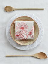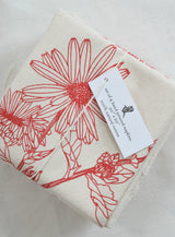 One large organic cotton tea towel (17" X 38") screen printed with my original Calendula Flower design in fiesta red. These are designed and hand printed by me using eco friendly ink. Each towel has an organic tag and twill hanging loop. We've placed the print at the bottom half of the towel, perfect for folding in half!