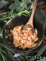 Gently stir with a wooden spoon before use, as oils may separate. Massage onto damp (or dry) skin in circular motions and rinse thoroughly, letting go of what no longer serves you. Caution: oils may make the shower floor slippery—use care.