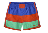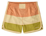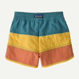 Patagonia's fun, color-blocked, baby-sized boardshorts are crafted of quick-drying NetPlus® 100% post-consumer recycled nylon faille made from recycled fishing nets to help reduce ocean plastic pollution, and treated with a durable water repellent (DWR) finish made without intentionally added PFAS, for comfort in and out of the water. They have a soft elasticized waistband for easy on/off. Inseam is 2".