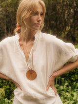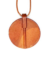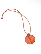 Handmade ceramic pendant on a leather cord. Terra-cotta colored matte glaze. Natural brown leather.