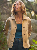 our go-to layer for brisk walks and outdoor gatherings. The Painter Jacket is a cute and functional update to a classic chore coat. It features patch pockets for storage, bonus hand pockets for comfort, and it has a collar that can be buttoned up or folded down like a lapel.