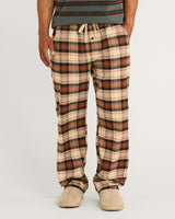 Men's soft, pure cotton flannel pajama pants in classic plaid, with an elastic/tie waist, button fly and two side-seam pockets.