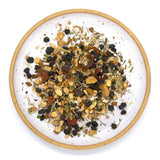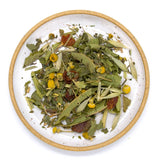Aromatic and pleasantly bitter, this blend of antimicrobial and decongestant herbs will help you kick that cold quicker. * Organic ingredients- Elderflower, hyssop, peppermint, eucalyptus, yerba santa, holy basil and calendula. Caffeine free