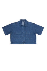 Super boxy, avant-garde shape, this Jungmaven short sleeve top is crafted from soft hemp denim. Its perfect cropped length pairs beautifully with high-waisted bottoms, making it a standout piece on its own or layered over a sleek tank.