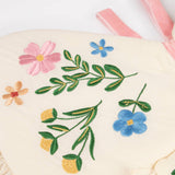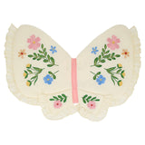 Natural cotton butterfly wings, with a light polyester padding * Embroidered flowers in blue, green, gold, yellow, pink and peach * Ruffled cotton frills * Light pink velvet ribbon details * Light pink velvet elastic, to comfortably wear the wings * Suitable for ages 3-6 years * Product dimensions: Wingspan - 18 inches