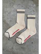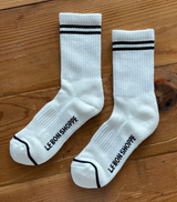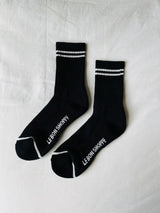 A signature style and year-round bestseller - the Boyfriend Socks capture a sporty vintage charm made for everyday wear. This slightly longer-than-crew sock features a contrast double stripe, mesh along the top of the foot for breathability, and elastic arch support. Durable, comfortable, and perfect for pairing with any shoe.
