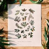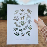 This print is an outpouring of Little Salt Wagon's love for Native California trees, wildflowers and foliage. There is such an abundance of beautiful trees native to the California landscape and that encapsulate the west so well - she hoped to capture a few of them here to be enjoyed in a home, cottage or cabin.