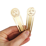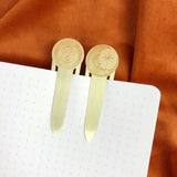 These beautiful brass tabs will help keep your place in your planner, notebook, or trashy romance novel. They function like extra large paper clips so they grip tight to the pages.