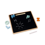 This early-childhood development toy will enable your child to learn the alphabet based on several plays levels: place the letters on the matching colors, recognize the letters then write them on the board on the board using the chalk provided. A range featuring delicate colors and rounded lines, inspired by current trends to gently support your child's first steps in learning! Water-based painting. Wood: plywood and MDF